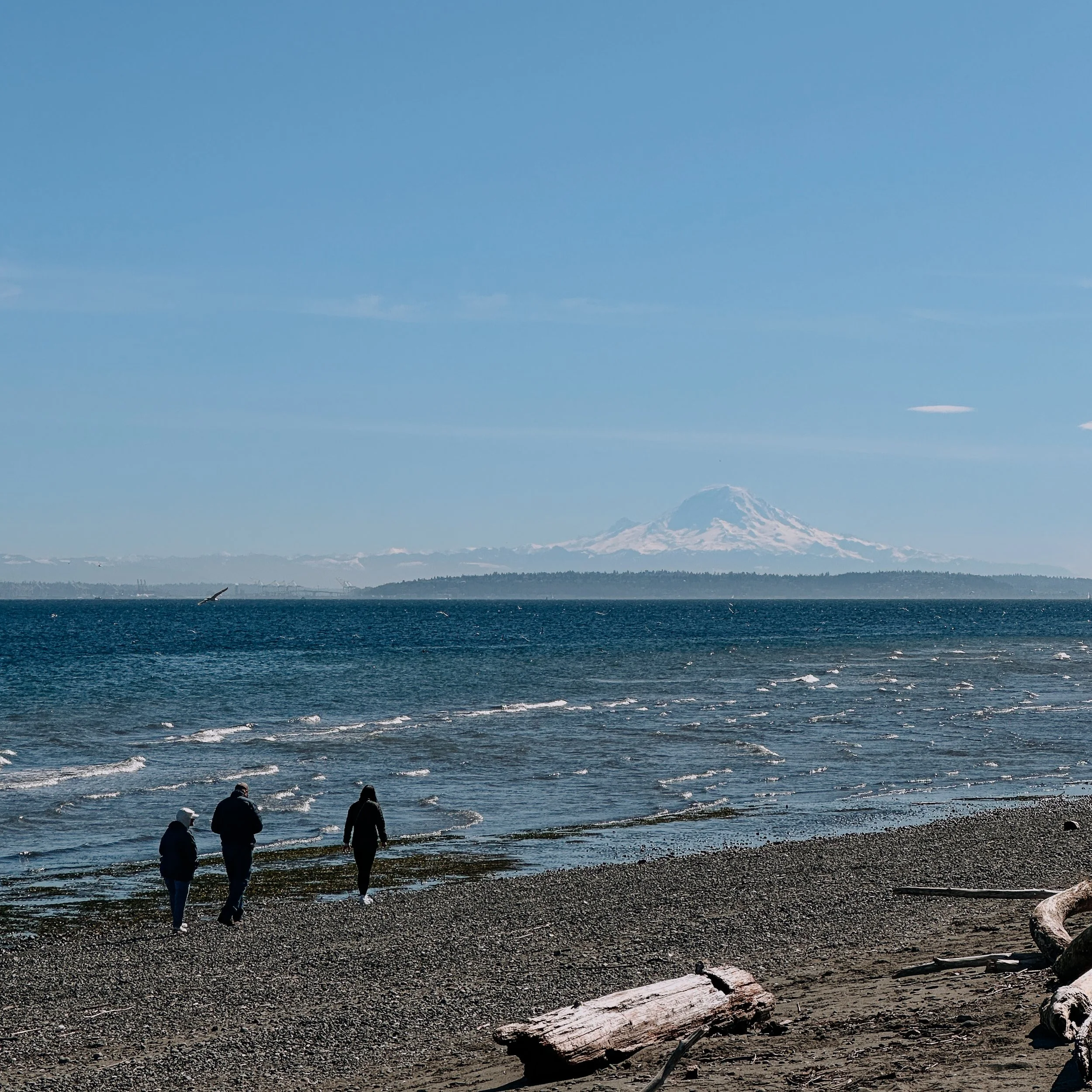 A beautiful view and a romantic spot for a stroll or a picnic any time of the year, Fay Bainbridge Park is strewn with sun-bleached driftwood logs and blessed with unbroken views of Rainier.