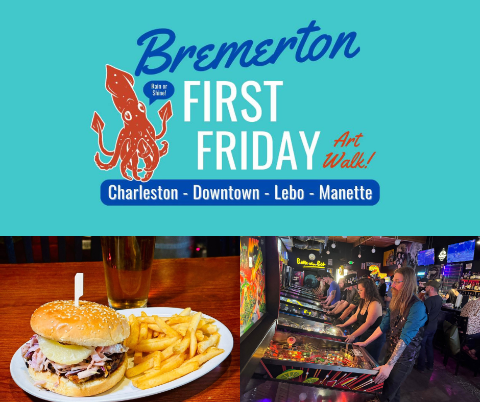 Bremerton’s First Friday Art Walk transforms downtown & Callow Ave into a community-driven celebration filled with local art, live music, pop-up vendors, buzzing with creative energy. Highlights often include stops at Collective Visions Gallery, Fingers Duke, Spark Commons, Ballast Book Co. and many more - all creating a festive, walkable evening that showcases the heart and soul of Bremerton. Town Portal Arcade (305 Pacific Ave) is a nostalgic nerdy wonderland packed with classic and modern arcade games, pinball machines galore, and retro Nintendo. Town Portal has a bar and is 21+ - so grab a pint and play some pinball!